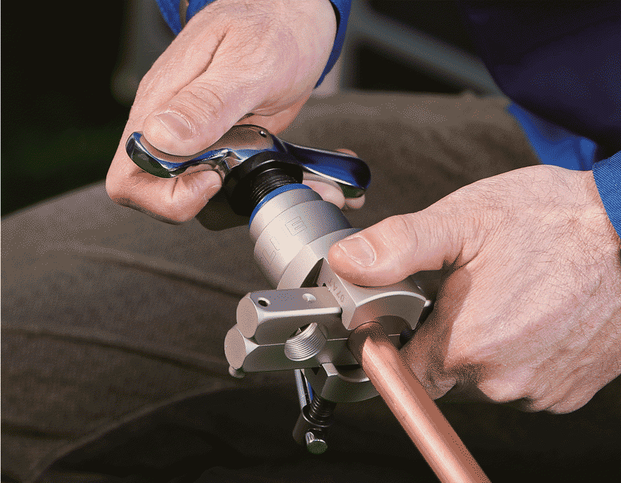 Utilise un système débrayable protégeant le tube à évaser d’un serrage excessif.