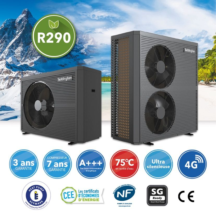 Pour réduire les émissions de carbone dans l'environnement et freiner le réchauffement climatique, TEDDINGTON a développé la pompe à chaleur air-eau avec le réfrigérant écologique R290 qui est en fait du propane pur.