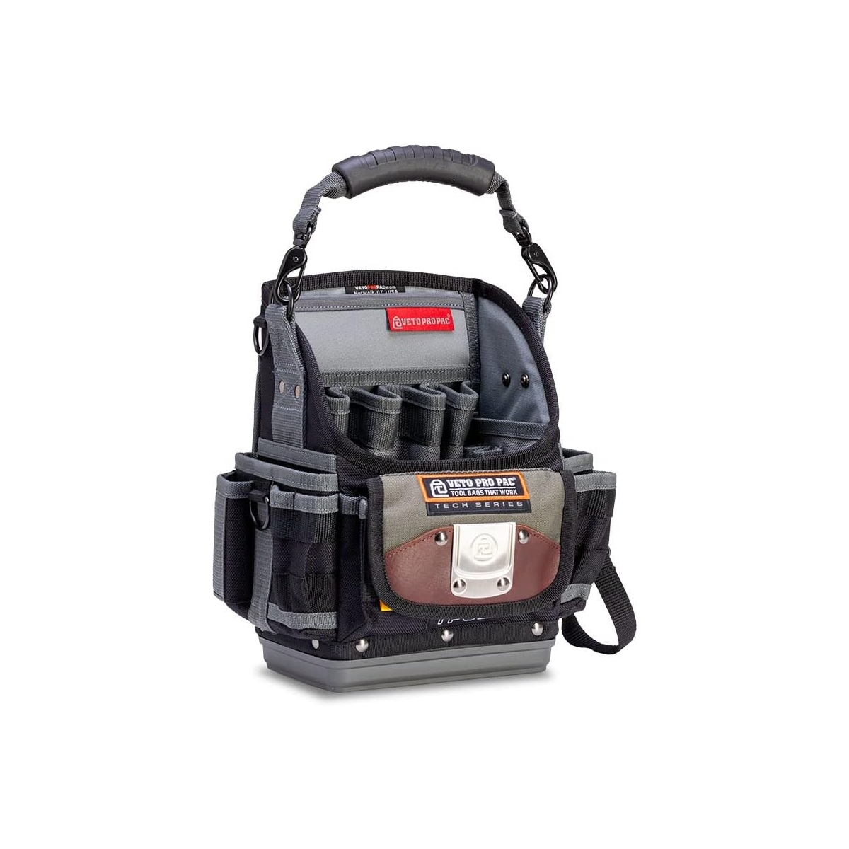 La pochette à outils compacte TP6B de Veto, ouverte sur un côté, permet de ranger divers outils, compteurs, fixations et serre-fils. Elle possède des poches extérieures, dont un compartiment arrière protégé des intempéries pour les instruments fragiles. Son intérieur spacieux peut être organisé grâce au panneau d'outils avant amovible V-SWAP (3 poches et sangle élastique). En retirant ce panneau, on obtient un grand espace pour des articles plus volumineux. Le TP6B est idéal pour les techniciens ayant besoin d'un sac minimaliste pour des interventions rapides.